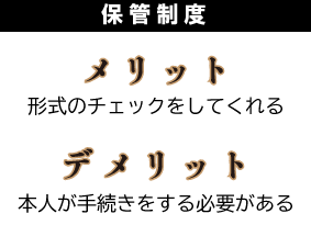デメリットについては、わずかですがお金がかかるのと、本人が公証人役場に行って「保管をお願いします」という手続きをしなければいけないこと。今の時点では本人が行かないといけないということになっています。