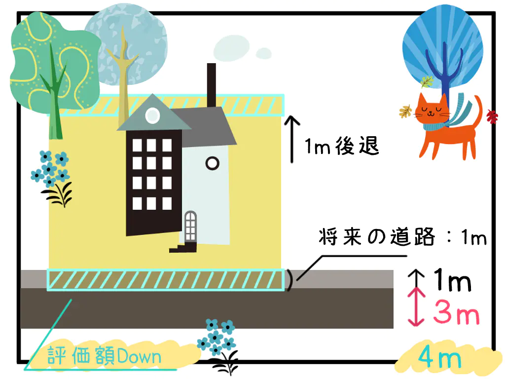 道路の幅を広げるために、接している土地を『後退』させること。