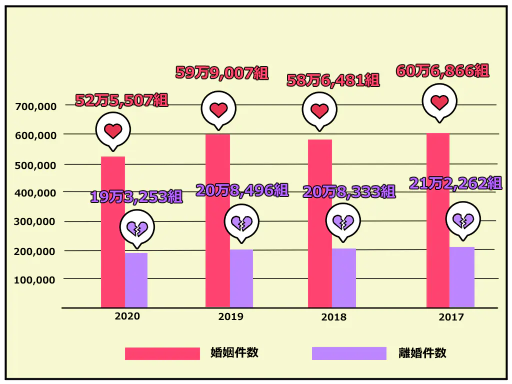 ところで、日本の離婚を数値化するとどんな感じなのでしょうか?