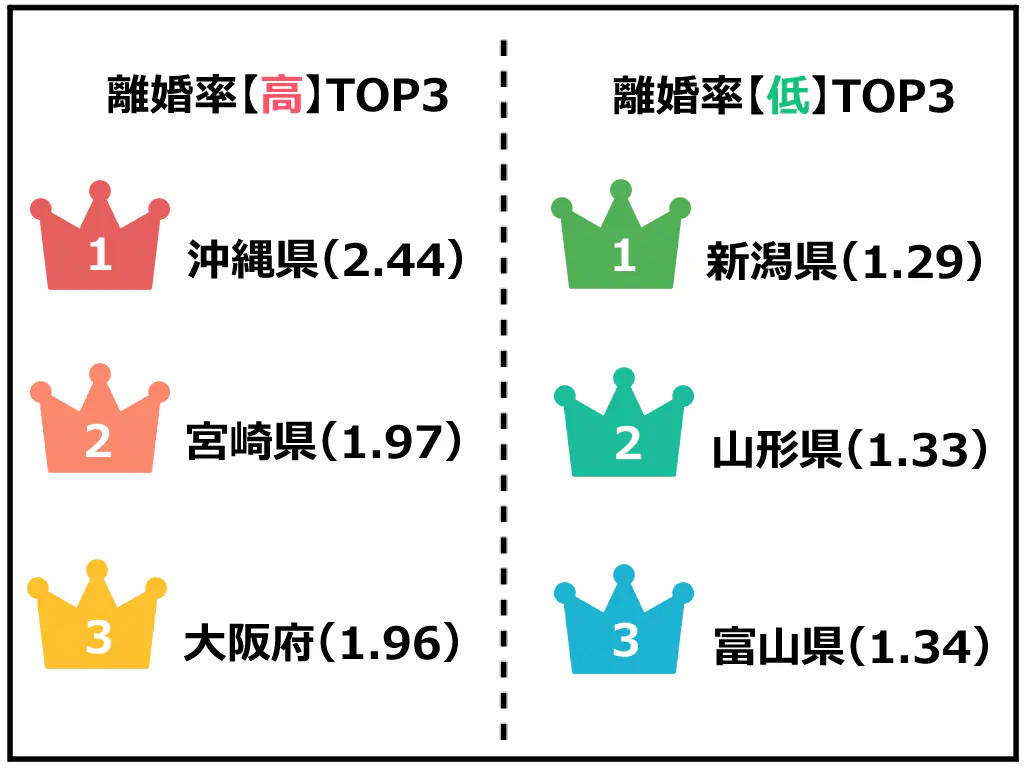 【都道府県別】離婚率ランキング