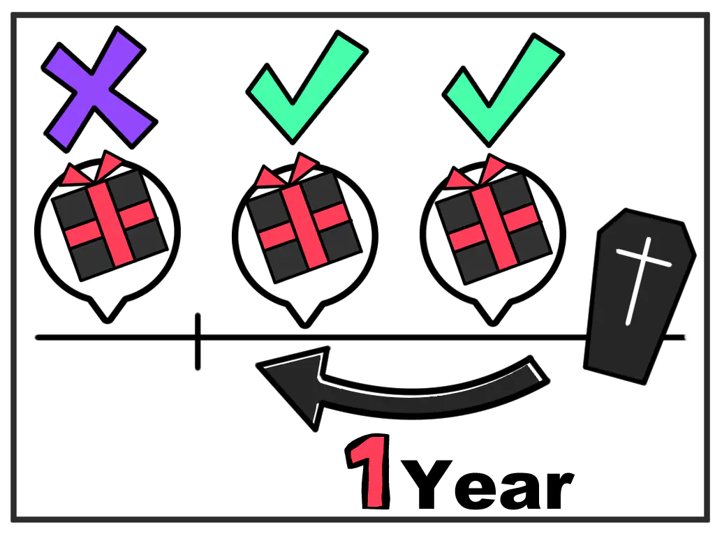 - 相続開始前『1年以内』に、『法定相続人以外の人』に対して行われた生前贈与