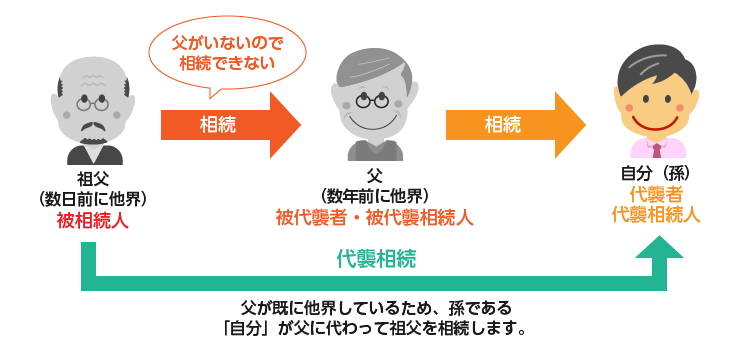 本来の相続人はあなたの父ですが、父が亡くなっている場合、代襲相続が発生し、あなたが「代襲相続人」として相続することとなります。